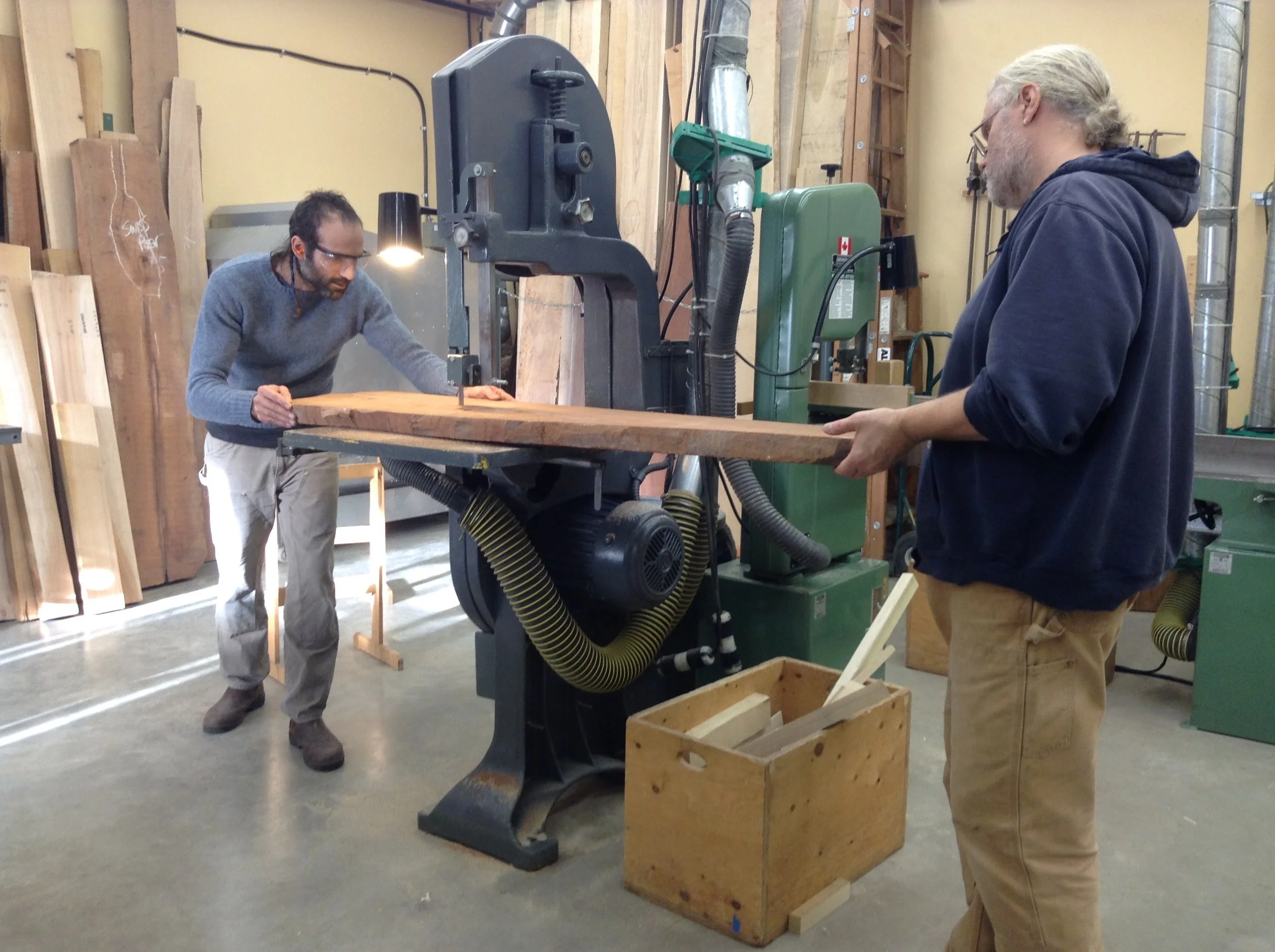 Chad is Composing a desk of European Sycamore in his final session here, based on JK's writing desk in Italian Walnut. The top will have a slight curve to it, as in the original, and he has laminated curved aprons to follow the shape.
